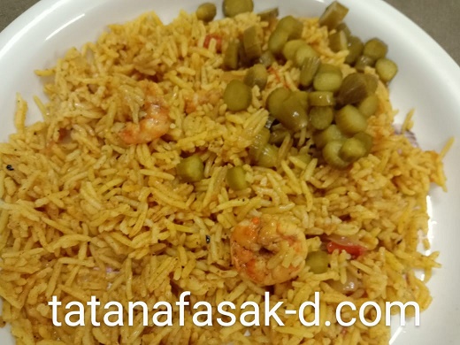 الطريقة يحضر القدر نضع فيه البصل وقليل من الزيت والطماطم على نار هادئة ومن ثم نضع الماء في المنتصف وصلصة الطماطم ونضع قليل من الملح والبهارات ونضع الجمبري حتى يكون الجمبري ناضجا ومن ثم نضع الارز حتى يكون جاهزا للأكل تقدم الاكلة مع مخلل الخيار حسب الرغبة بالهنا والشفا |